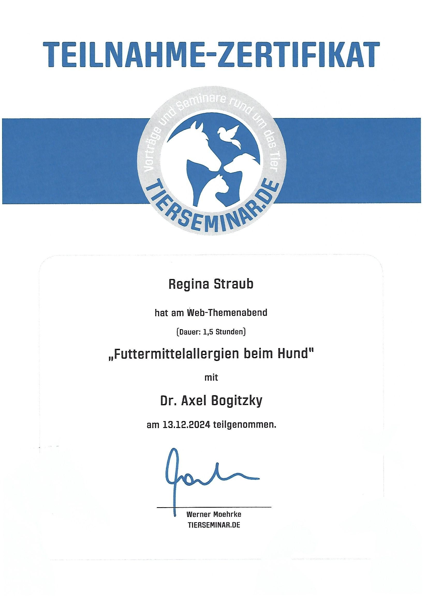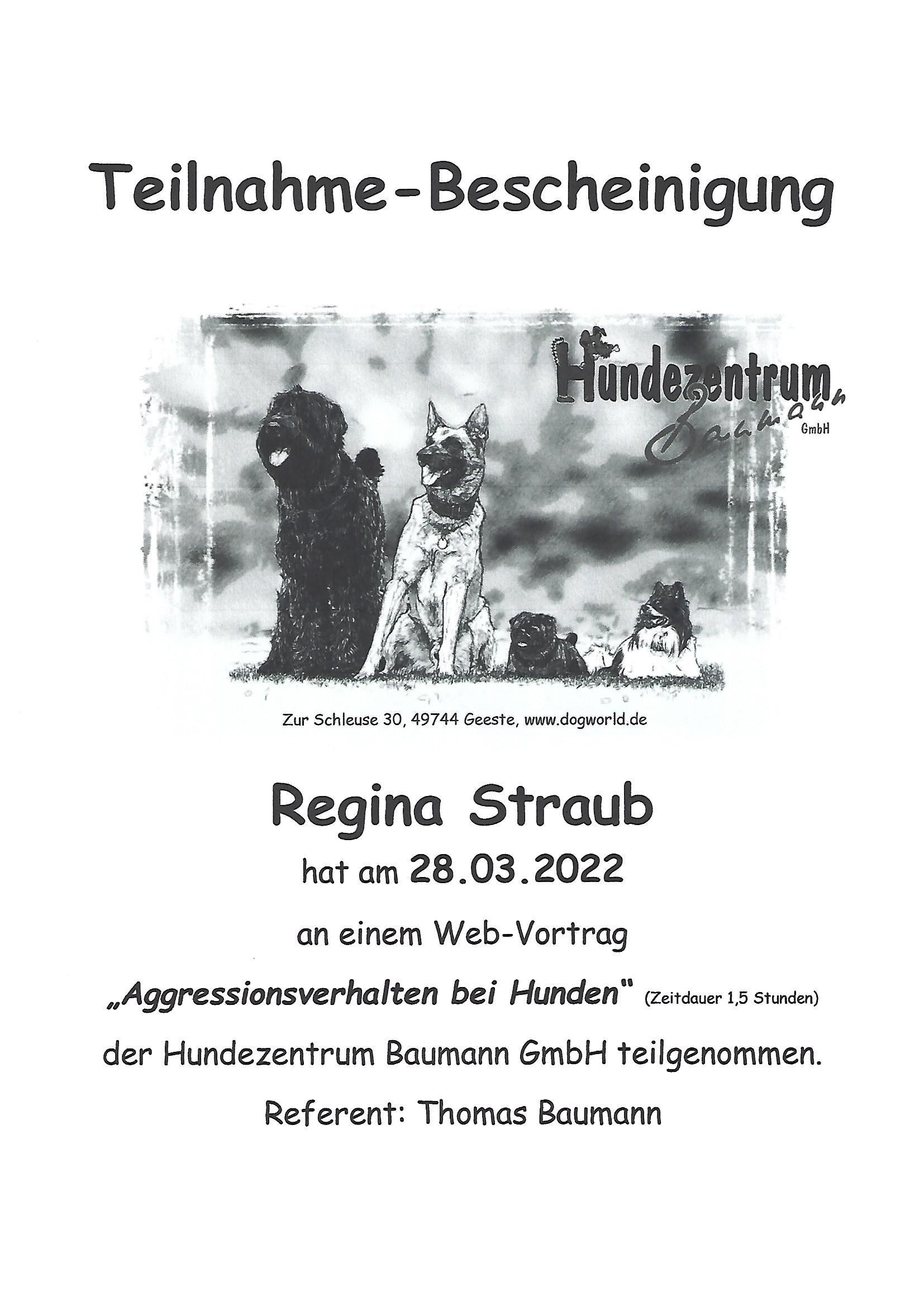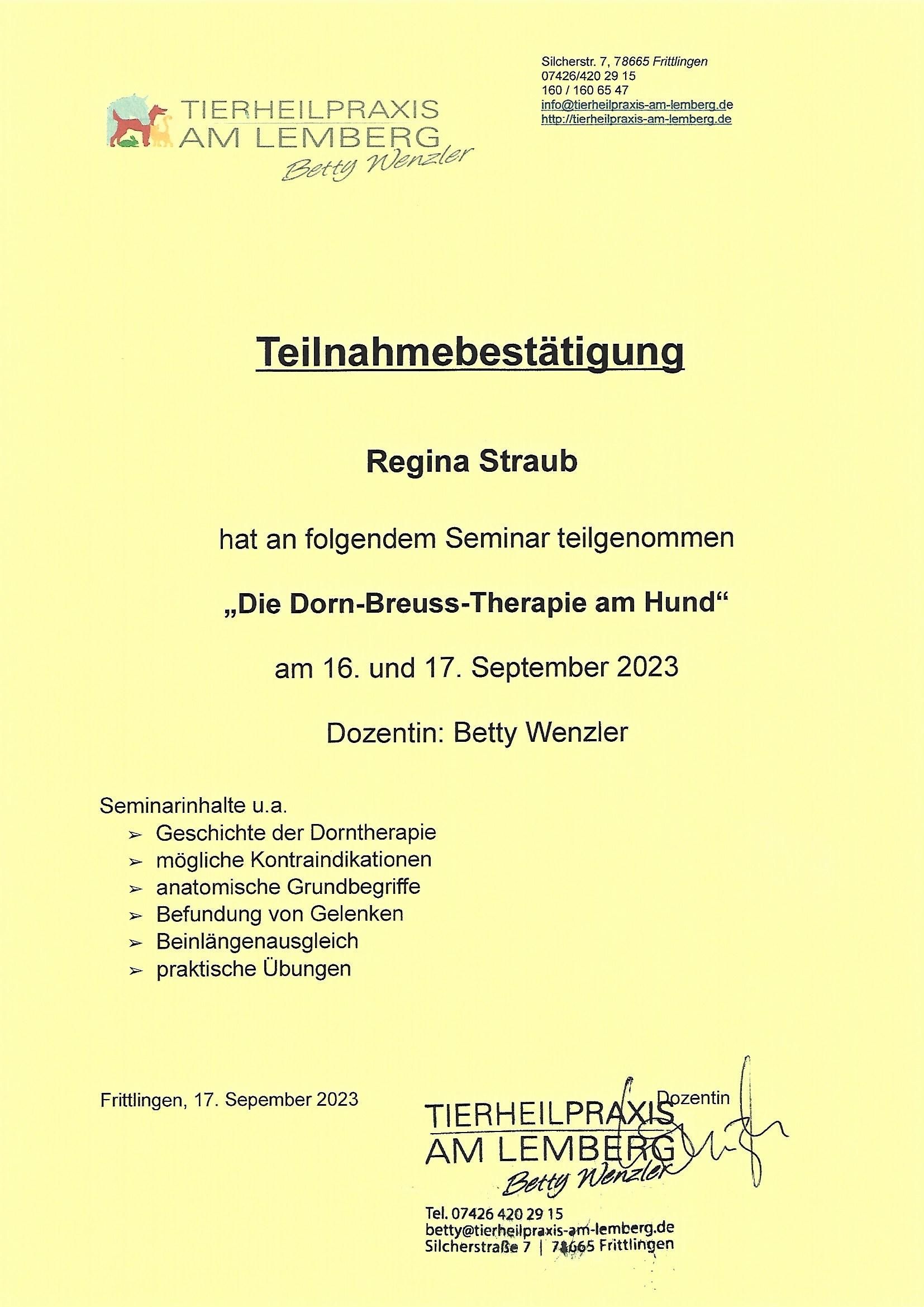 Ich heiße Regina Straub und bin Tierheilpraktikerin. Meine Schwerpunkte sind Hunde, Pferde und Katzen. Aus eigener Erfahrung weiß ich, dass eine gute Beziehung zu unseren Lieblingen Grundvoraussetzung für deren Gesundheit bildet. Aus diesem Grund liegt mein Hauptaugenmerk auf der Entwicklung einer gesunden, positiven Beziehung zwischen Mensch und Hund.