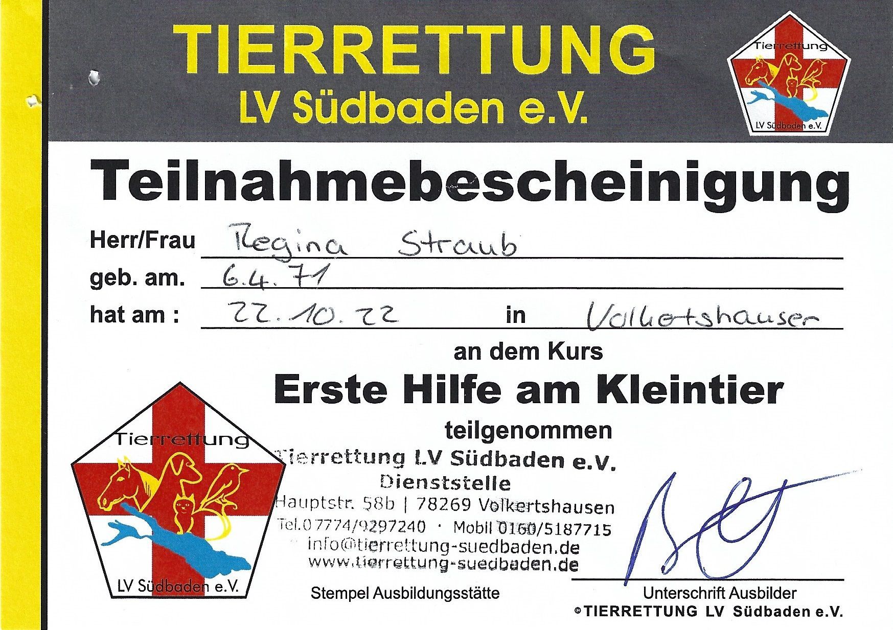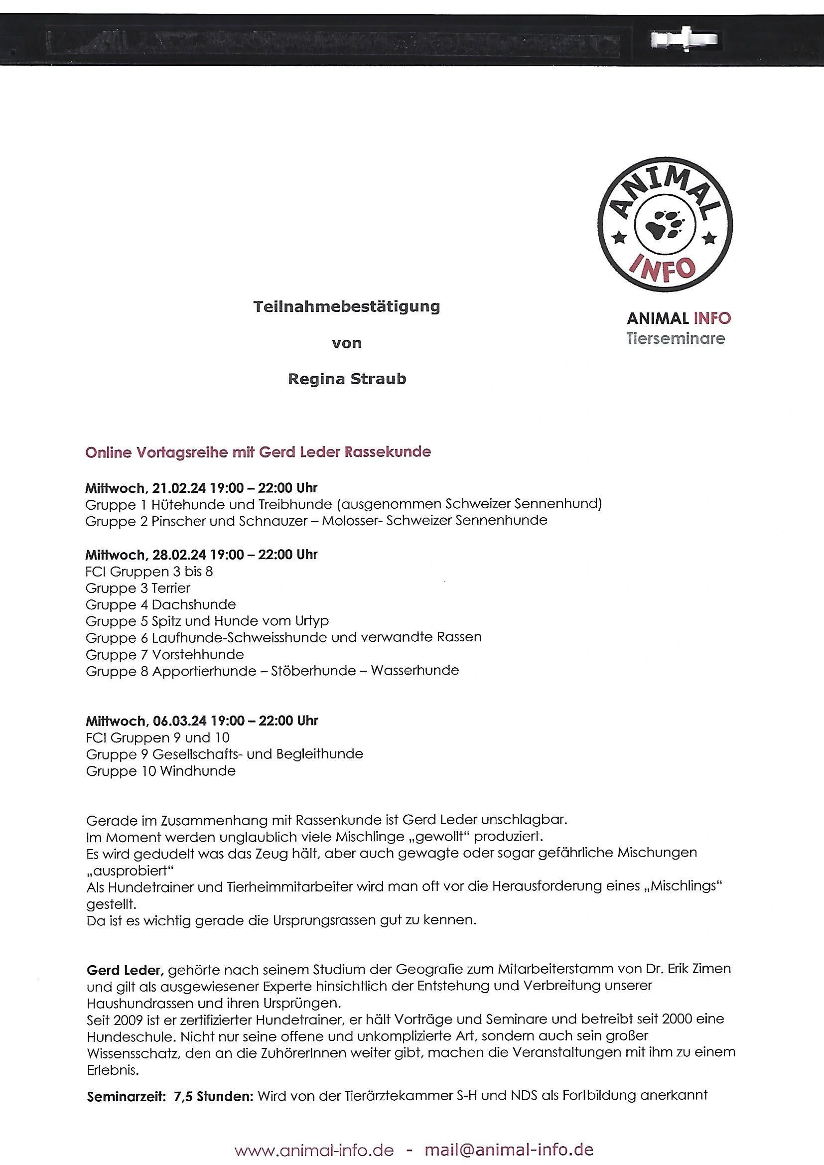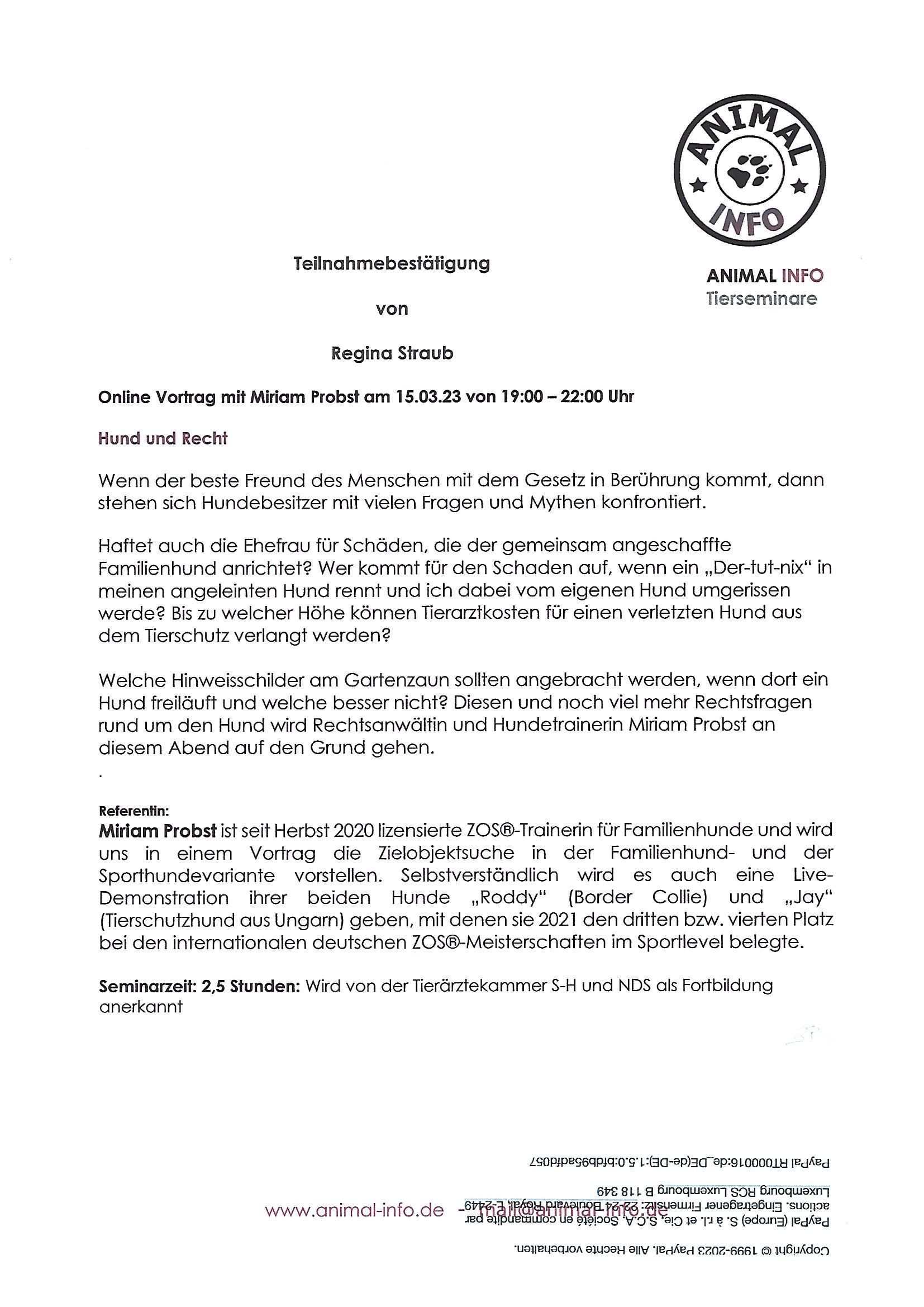 Ich heiße Regina Straub und bin Tierheilpraktikerin. Meine Schwerpunkte sind Hunde, Pferde und Katzen. Aus eigener Erfahrung weiß ich, dass eine gute Beziehung zu unseren Lieblingen Grundvoraussetzung für deren Gesundheit bildet. Aus diesem Grund liegt mein Hauptaugenmerk auf der Entwicklung einer gesunden, positiven Beziehung zwischen Mensch und Hund.